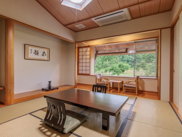 シンボルツリーのある自慢の中庭側客室は和室12.5帖。畳敷きの広めの和室でのんびりと。