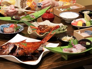 地魚中心のお料理とアワビステーキ・金目の煮魚がメインとなります。