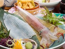 【自慢のイカ活造り会席】<宿専属漁師が1本釣り!>口の中で甘くとろけるイカ刺し!鮮度抜群の旨みを堪能