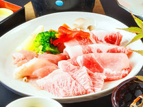 夕食は豚しゃぶ300gの定食♪浮いた食費で安く泊まれる☆温泉を楽しみたい方向け