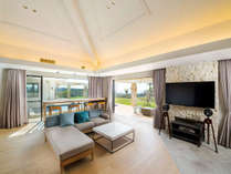 【デラックスコテージ】リビングの外にはプライベートプールが付いております。(4-10月限定)