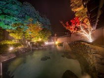 紅葉の湯 露天風呂 シンボルツリーの紅葉がライトアップされています