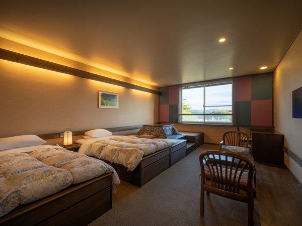 【本館客室】洋間タイプの部屋に、畳ベッドを使用した使い勝手のいいお部屋。広々としたお部屋です。
