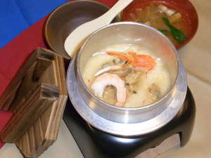 グレードアップ海鮮たっぷり!パエリア風釜飯(+\600) |