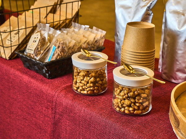 【ウェルカムドリンク&スナック】自由にお楽しみいただけます。