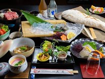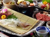 スタンダード!なのに活きイカとA5ランク佐賀牛を!商標登録、鯛の塩釜付き(お食事処)