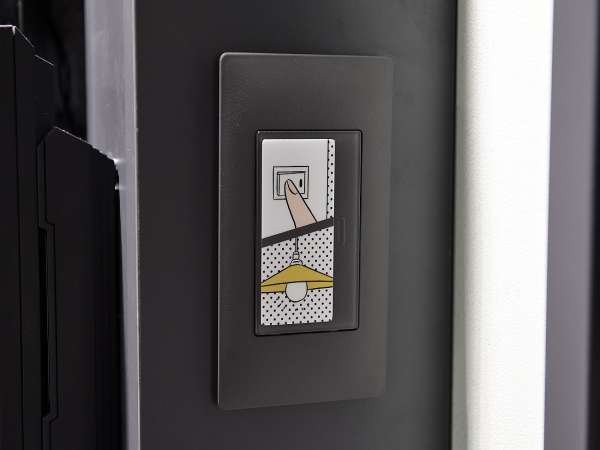 【客室】入ってすぐの所に電気スイッチあり。タビノスらしいデザインです。