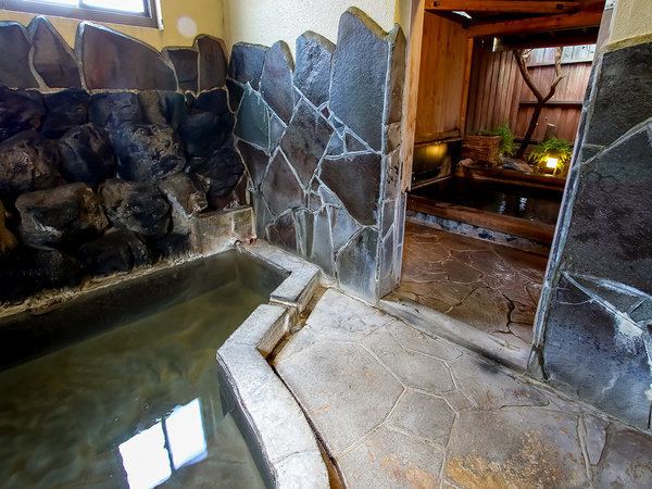 ・【岩風呂+半露天】萬力屋の湯の泉質は塩化物泉。芯から温まる良泉です