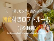 【ロフトルーム2名・朝食付き(-200円引き)】1階リビング/2階寝室 2人で楽しむロフトルーム