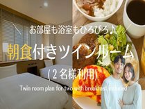 【2名ツイン・朝食付き(-200円引き)】お部屋も浴室も広々で2人で快適ステイ 朝食はバイキングです!