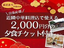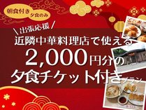 【出張応援】近隣中華料理店で使える2,000円分の夕食チケット付き|駐車場無料|夕食のみ