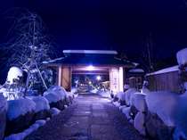 【外観:冬】北アルプスの山懐に佇む雪に覆われた静寂な湯宿。白銀の世界でお待ちしております。