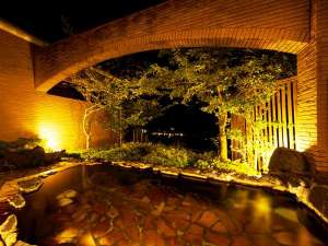 漁り火を眺めながら源泉かけ流しを楽しめる露天風呂 |