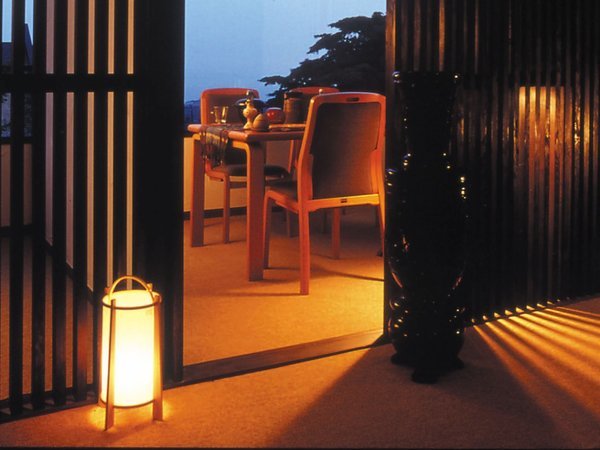 半露天風呂付きオリエンタル和室。夜はしっとりとした湯浴みを。