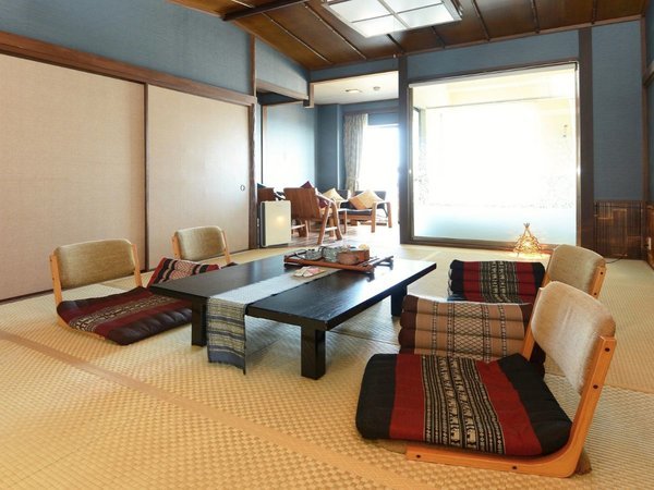 海を望む特別室バリルーム。バリ家具に包まれた、非日常の寛ぎ空間。