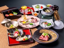 【2026春の篝火膳】厳選素材とこだわりの器で、味はもちろん見た目も楽しめる当館最上グレードの会席です。