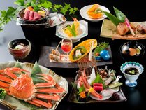 【夕食】越前蟹会席:冬の味覚の王者越前蟹と、灰屋自慢の越前郷土会席、どちらもご堪能いただけます。