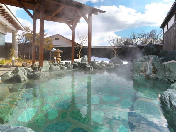万代鉱源泉100%かけ流しの大浴場と庭園露天風呂。