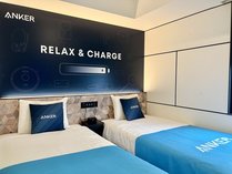 Ankerグループの人気製品設置「Anker Room」モバイルバッテリー付き<無料朝食・ラウンジ付き>