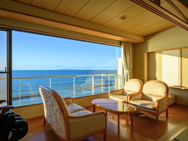 【そよ風館最上階和洋室『海楼』】露天風呂付きの最も広い和洋室タイプの客室です。
