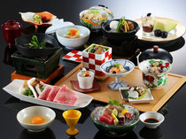 ≪お部屋おまかせでお得≫【食事時間18:45】旬の味覚を敷きつめた黒毛和牛付き御膳|1000円金券付