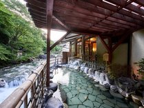 圧倒的な大迫力!!四万川を独り占めできる≪渓流露天風呂付き客室≫で自然を体感♪【オリジナル里山懐石】