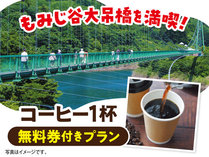 【もみじ谷大吊橋を満喫!コーヒー無料券付】1泊2食付バイキングプラン