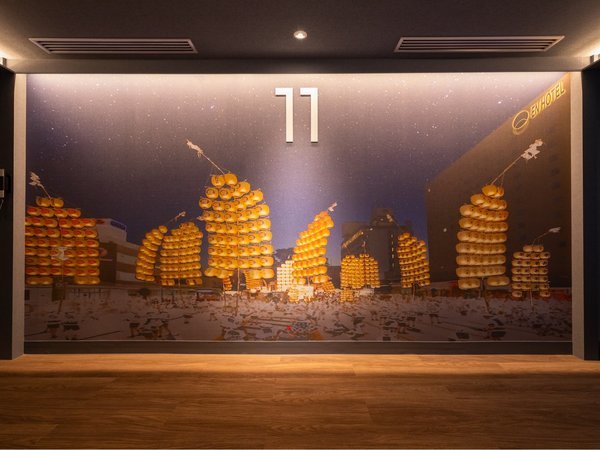 伝統の竿燈をモチーフにしたエレベーターホールのアート