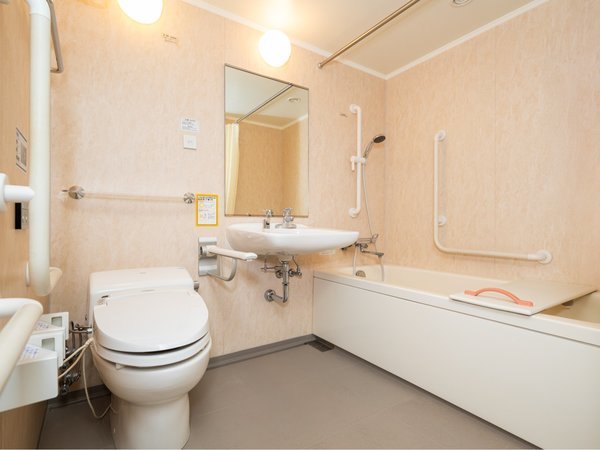 | ○ | 車椅子対応共用トイレ | × | 耳の不自由な方向けの警報ランプ対応客室 |