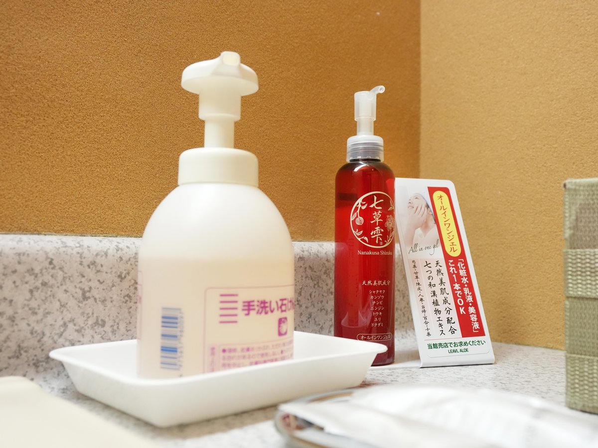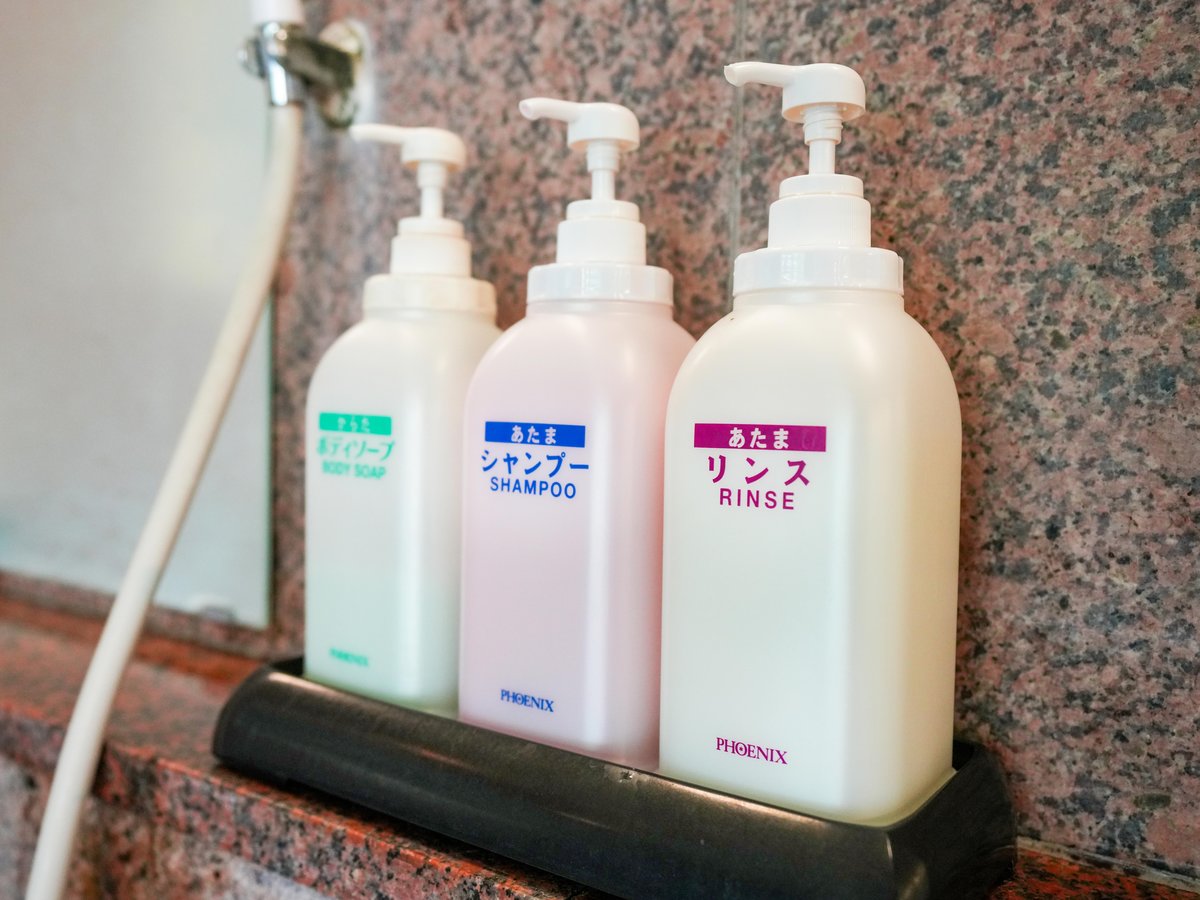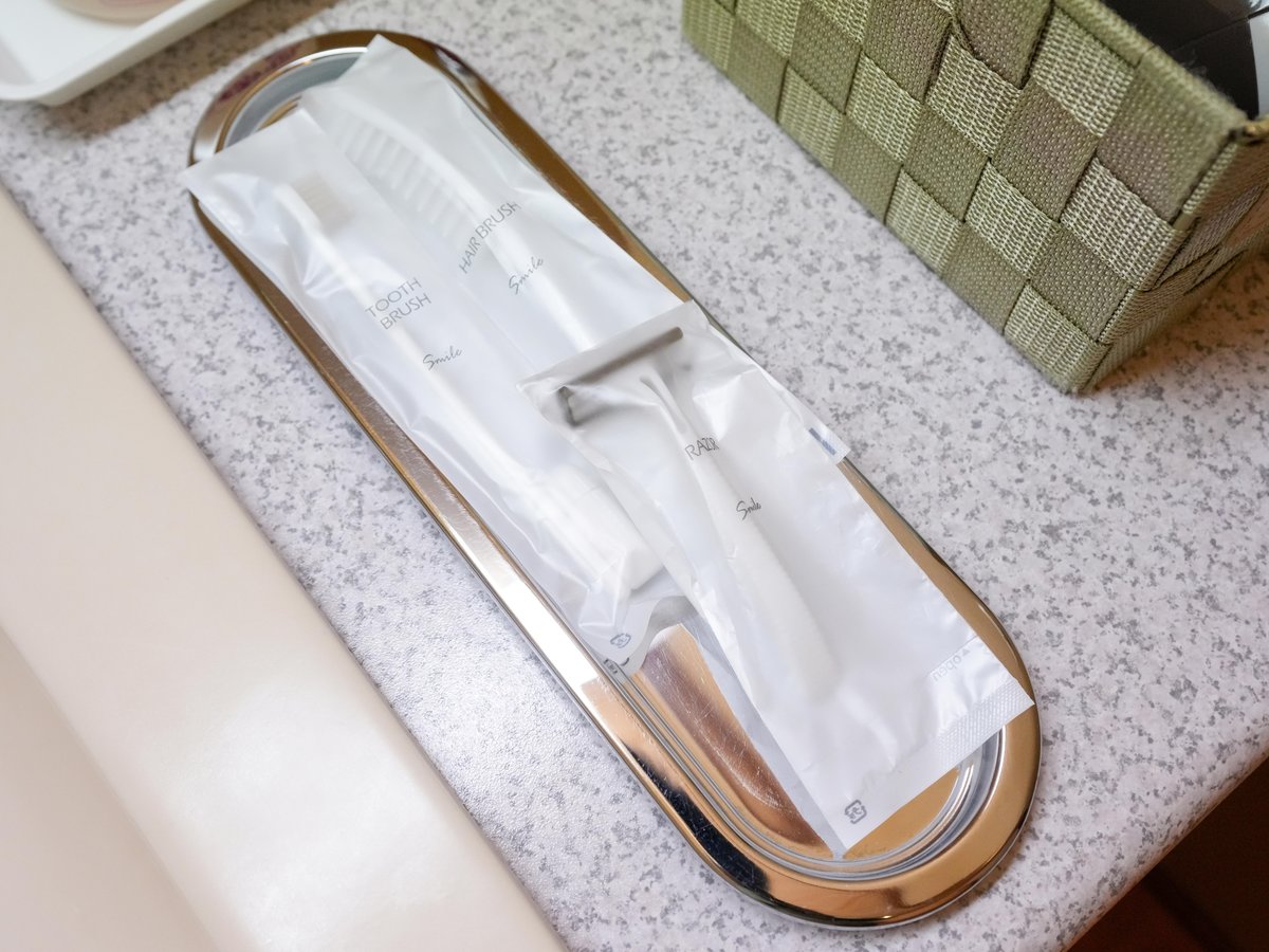 ○ ハンドタオル ○ ボディソープ ○ ドライヤー ○ 温水洗浄トイレ ○ 歯ブラシ・歯磨き粉 ○ 石けん ○ 羽毛布団 ○ くし・ブラシ ○ バスタオル ○ 浴衣 ○ 髭剃り ○ シャンプー