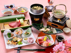 【春の会席】伊豆半島の新鮮な魚介類や旬の素材をお楽しみいただける創作会席料理です(一例) |