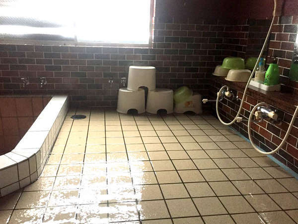 女性用お風呂。湯船が深いので中に踏み台となる段が付いています。