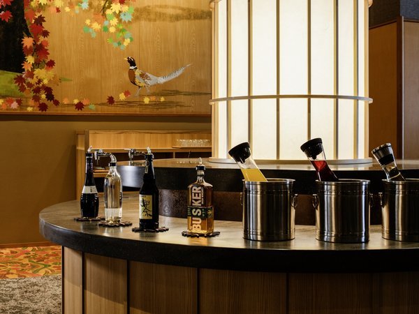 【ロビー】お酒やソフトドリンクを自由に愉しむフリーフロー。お好みのグラスを片手に、贅沢なひとときを。