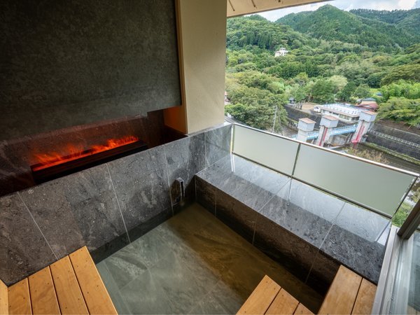 【展望浴場 萩姫の湯】山々を望む2つの浴槽やお一人用サウナ、火照った身体を冷ます足湯露天などあります