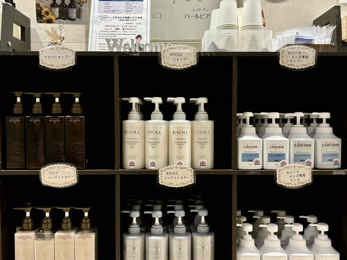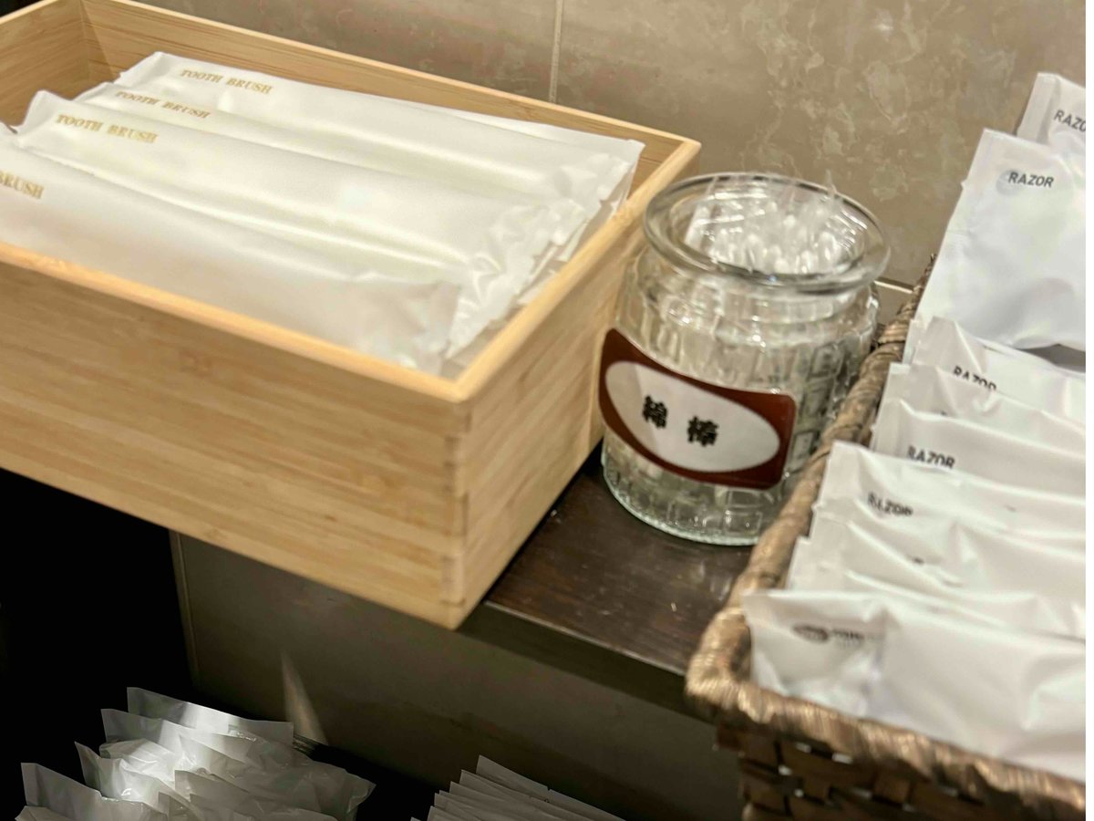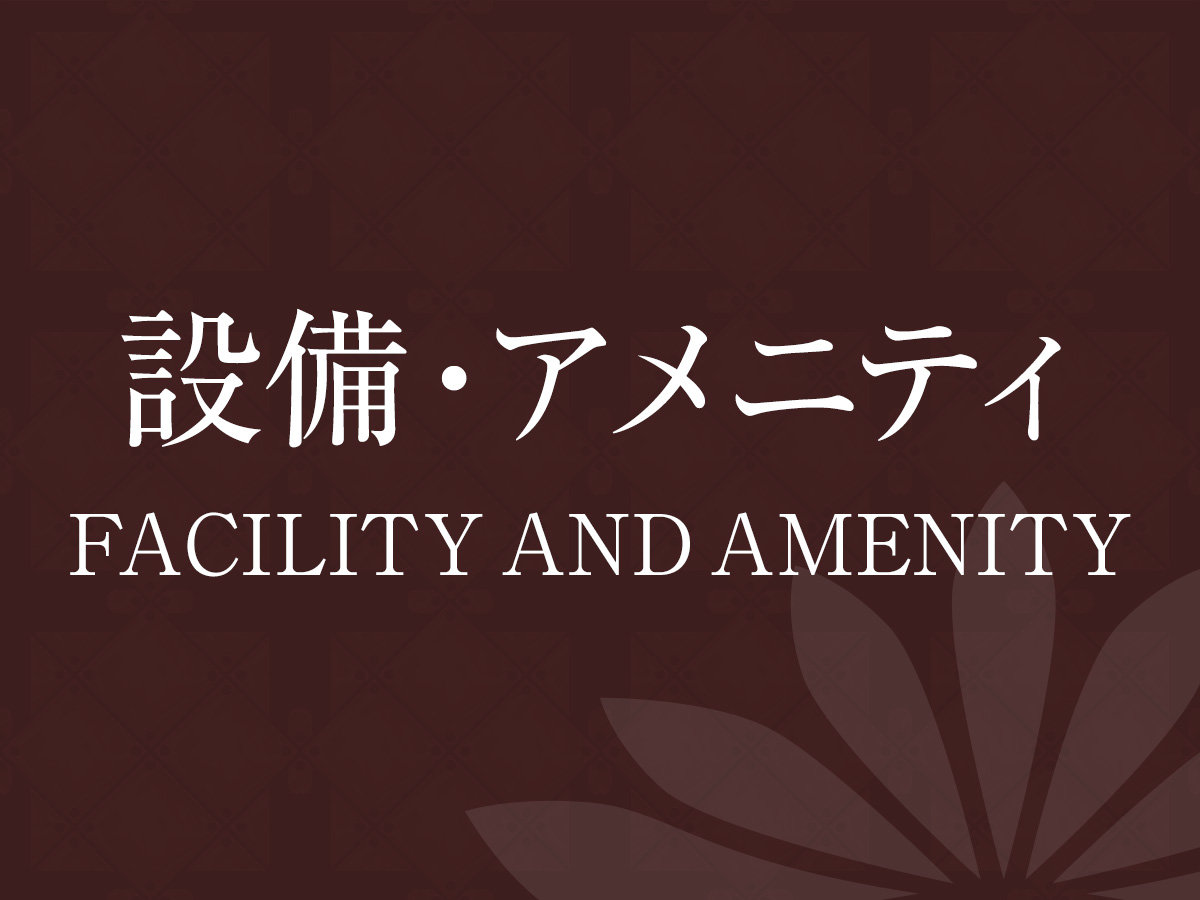 ○ ハンドタオル ○ ボディソープ ○ ドライヤー ○ 温水洗浄トイレ ○ 歯ブラシ・歯磨き粉 × 石けん ○ 羽毛布団 ○ くし・ブラシ ○ バスタオル × 浴衣 ○ 髭剃り ○ シャンプー
