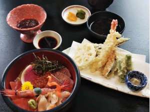 人気の海鮮丼と天麩羅の組み合わせはいかがですか?人気の御膳です。 |