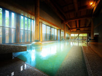 【名取の御湯】陽光がたっぷりと差し込み、野外で湯浴みしているような開放感。