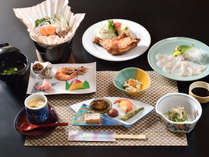 Basicプランのご夕食一例。夕食は会席料理をお出ししています。