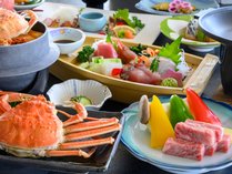 【メインが選べる<蟹刺しorゆで蟹>越前蟹満喫コース】当宿人気NO1!蟹すき鍋・せいこ蟹釜飯も!