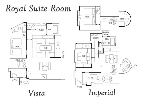 温泉露天風呂付きメゾネットスイート「セレネ」(禁煙)1部屋ごとにデザインの異なるリビング 一例