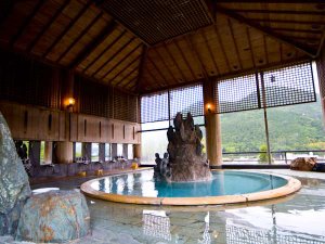 【満天星の湯(男性浴場)】つるつるのお湯が大好評!開放感抜群の大浴場。すぐ隣には露天風呂もある |