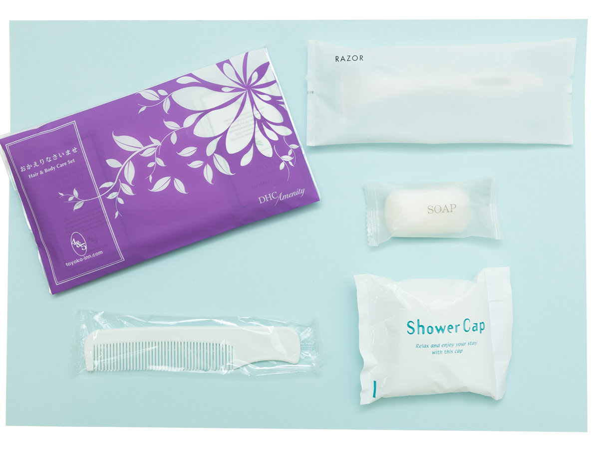 ○ ハンドタオル ○ ボディソープ ○ ドライヤー ○ 温水洗浄トイレ ○ 歯ブラシ・歯磨き粉 ○ 石けん ○ 羽毛布団 ○ くし・ブラシ ○ バスタオル × 浴衣 ○ 髭剃り ○ シャンプー