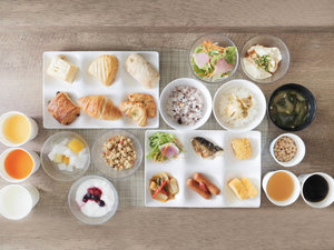 毎朝出来たてサクサクの香り高い焼きたてパンや、オーガニック野菜のサラダ、日替わりのおかずやご当地メニューなどをビュッフェ形式でご用意しております。