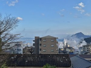 和洋室からの眺望/立ちのぼる湯けむりの向こうに別府湾を望めます |