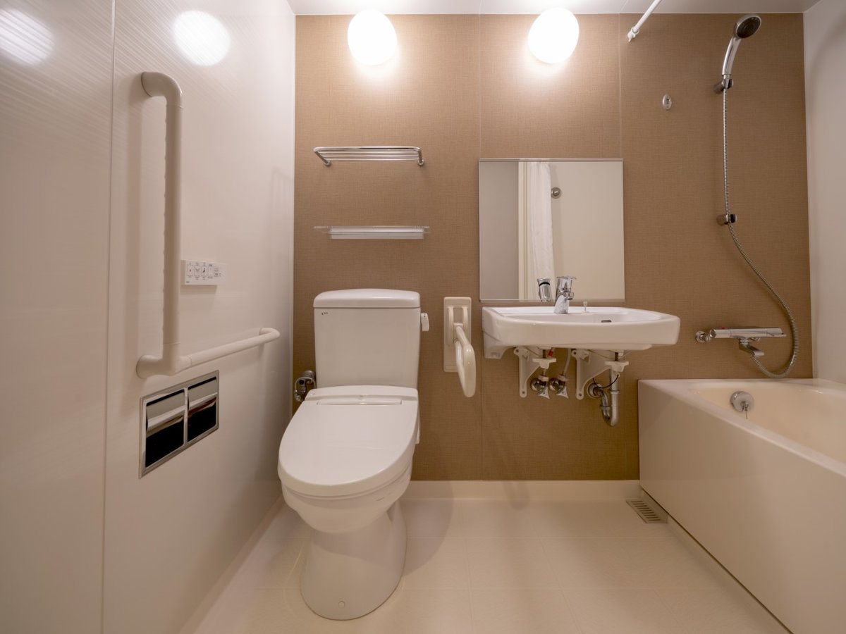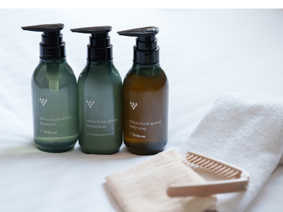 ○ ハンドタオル ○ ボディソープ ○ ドライヤー ○ 温水洗浄トイレ ○ 歯ブラシ・歯磨き粉 × 石けん ○ 羽毛布団 × くし・ブラシ ○ バスタオル × 浴衣 × 髭剃り ○ シャンプー