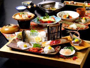 『豪華平目の板盛プラン』夕食メニューの全体例※当館の人気NO.1メニューです♪ |