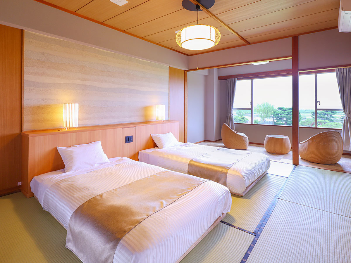 洋室 和室 和洋室 その他 総部屋数 26室 100室 6室 1室 133室 ▼洋室の内訳(部屋タイプと広さ) シングル ダブル ツイン スイート 0室 0室 26室 0室 - - 24〜36m2 - 標準的な部屋設備 全室バストイレ・全室冷暖房・テレビ・空の冷蔵庫・ズボンプレッサー(貸出含む)