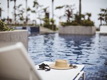 【アクアガーデン】フサキビーチに沿って配された、3つのレイヤーが美しい紺碧色のプール※季節営業