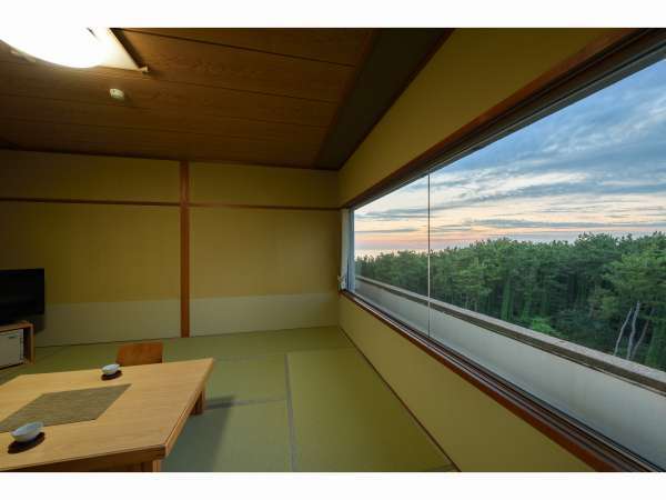 その日その日で違う顔を見せる日本海と青松林のコントラストな絶景。新鮮な海の幸と地元食材を中心とした和洋中バイキング。森林浴も楽しめる露天風呂。 |