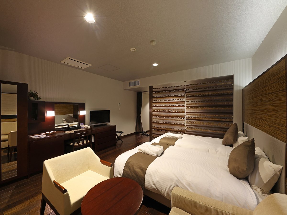 洋室 和室 和洋室 その他 総部屋数 10室 20室 2室 2室 34室 ▼洋室の内訳(部屋タイプと広さ) シングル ダブル ツイン スイート 2室 0室 4室 4室 - - - - 部屋補足 温泉露天風呂つき客室9室有